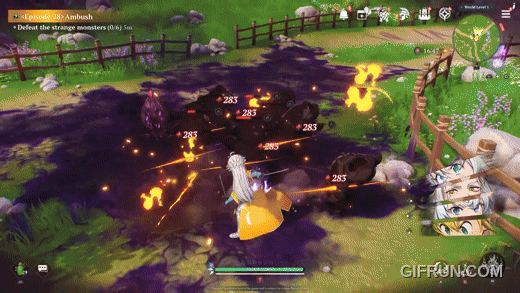 - 캐릭터 조합에 따라 '합기'라는 연계기가 발동됩니다. 예를 들어 하우저의 토네이도에 길선더의 번개를 더하면 불 토네이도가 만들어지는 식입니다.