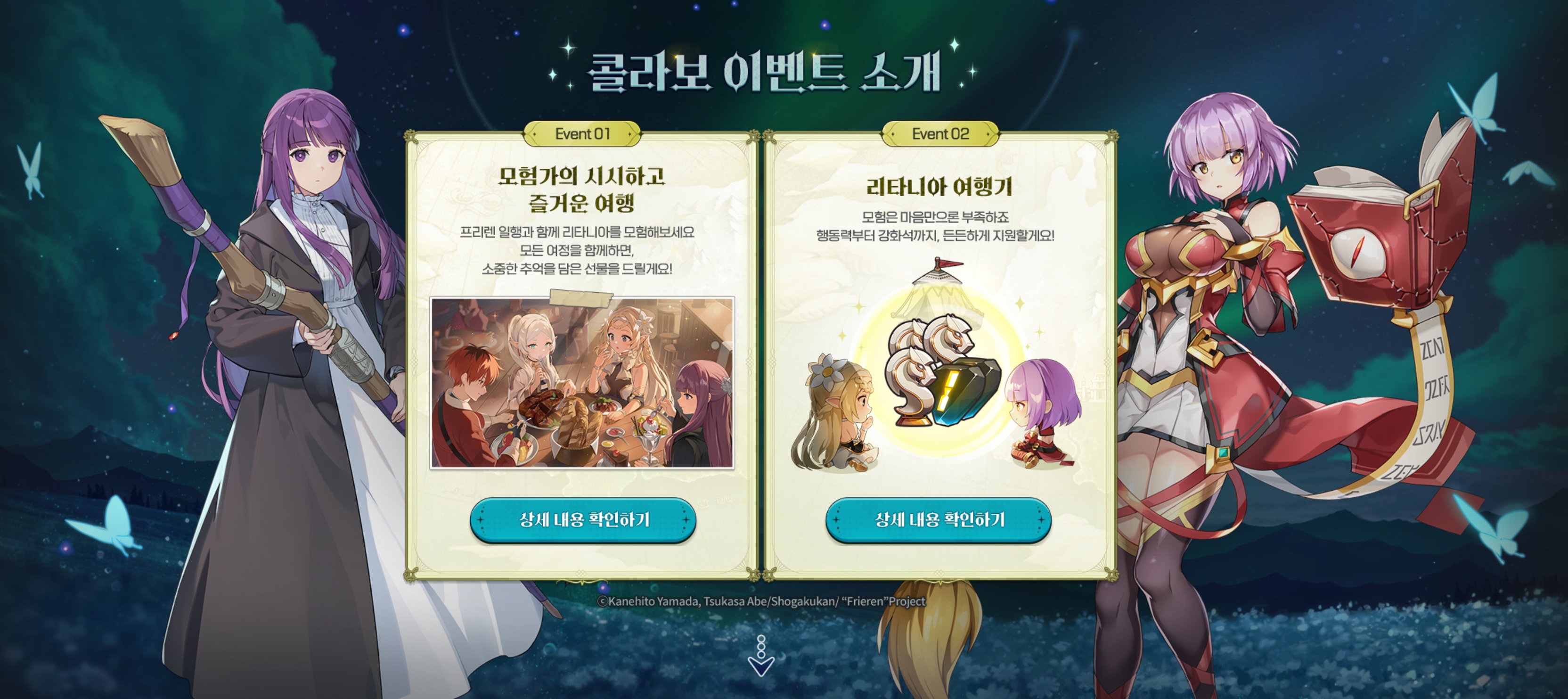 이번 콜라보 이벤트는 게임 내 [로비 > 이벤트 > 장송의 프리렌] 카테고리에서 모두 만나볼 수 있습니다!
